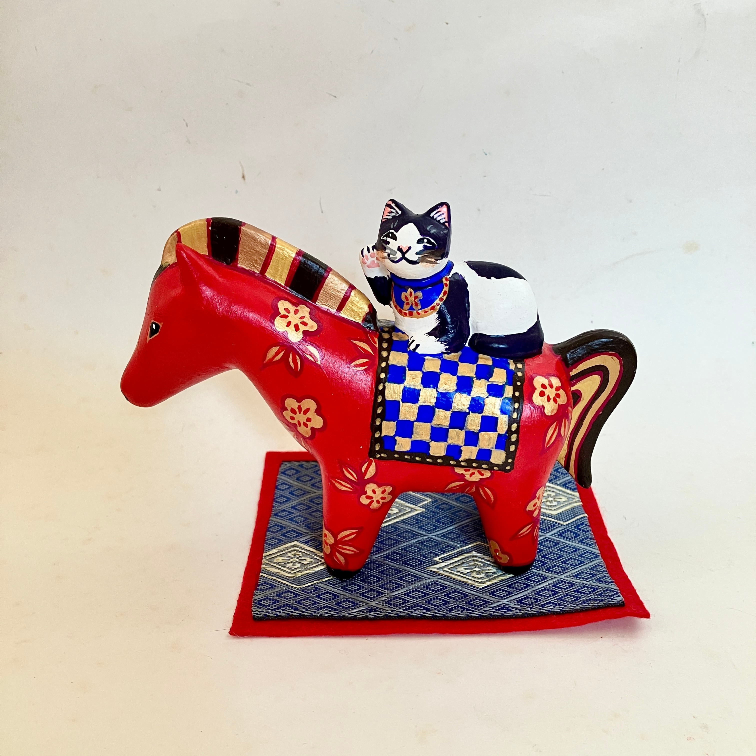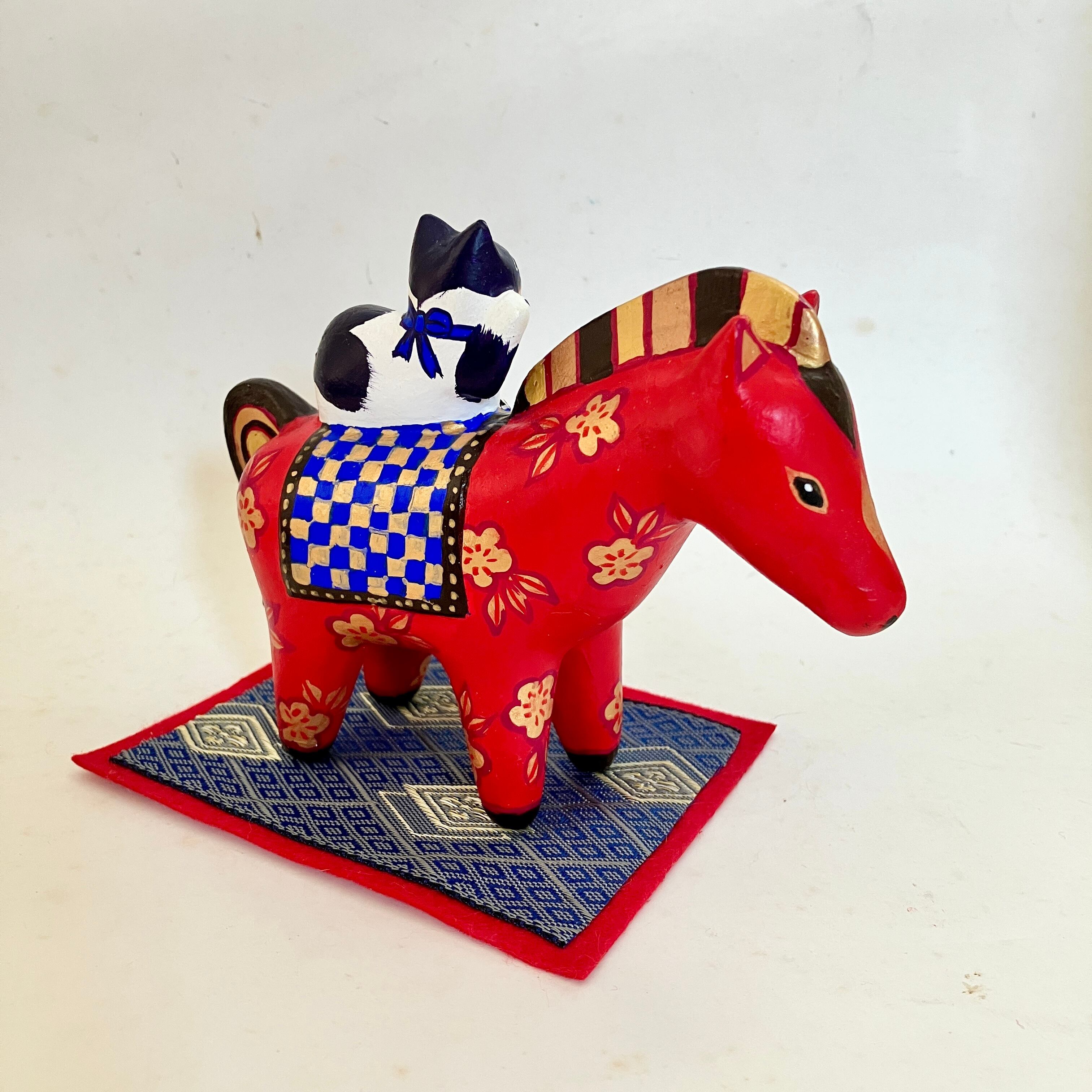 福馬(ふくば)に乗ったお猫様(赤午/ハチワレ猫)
