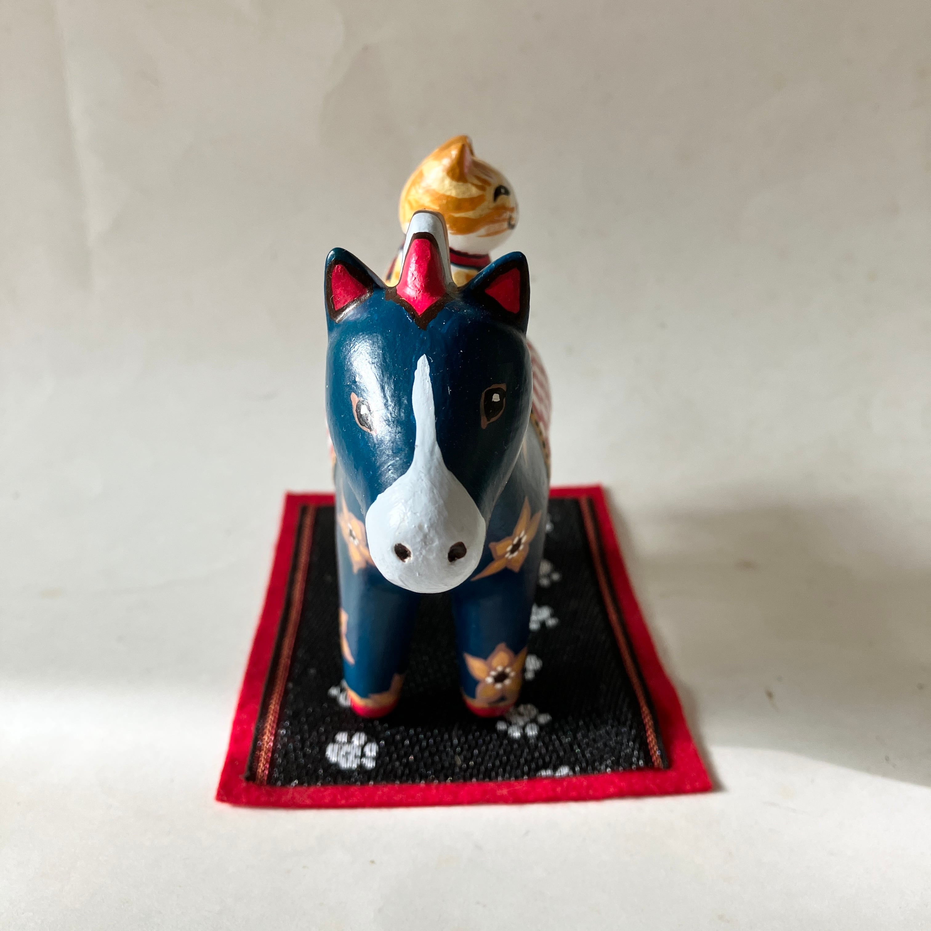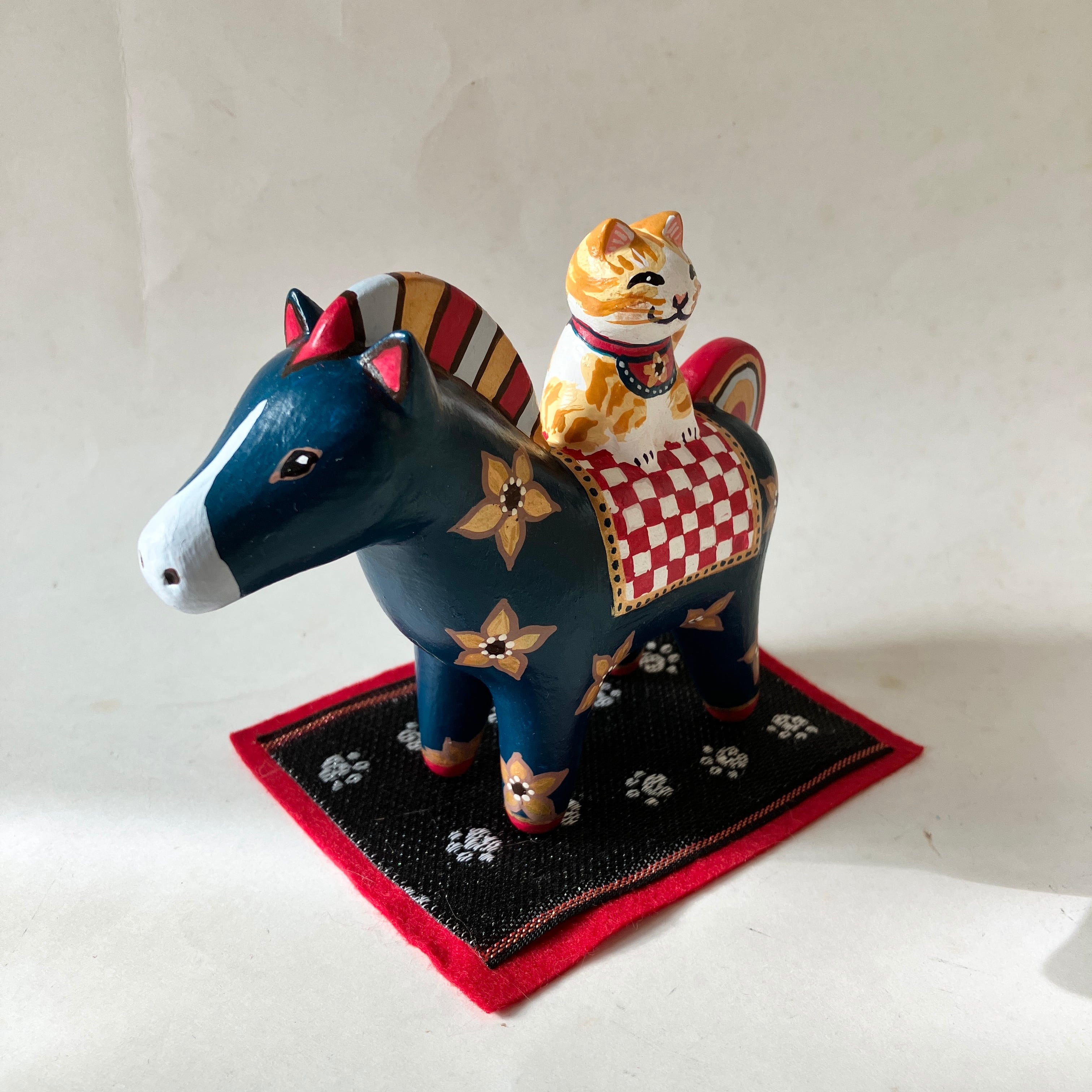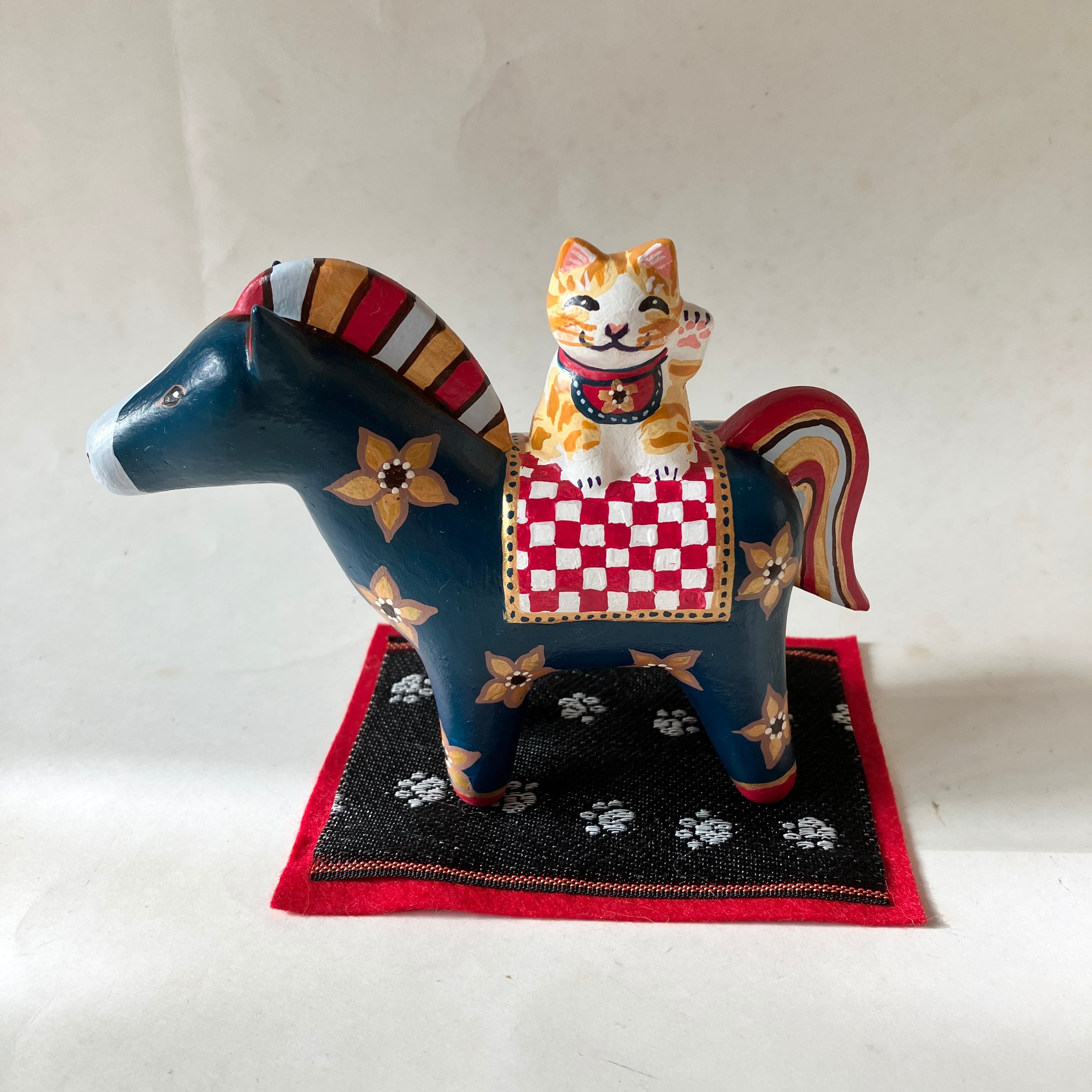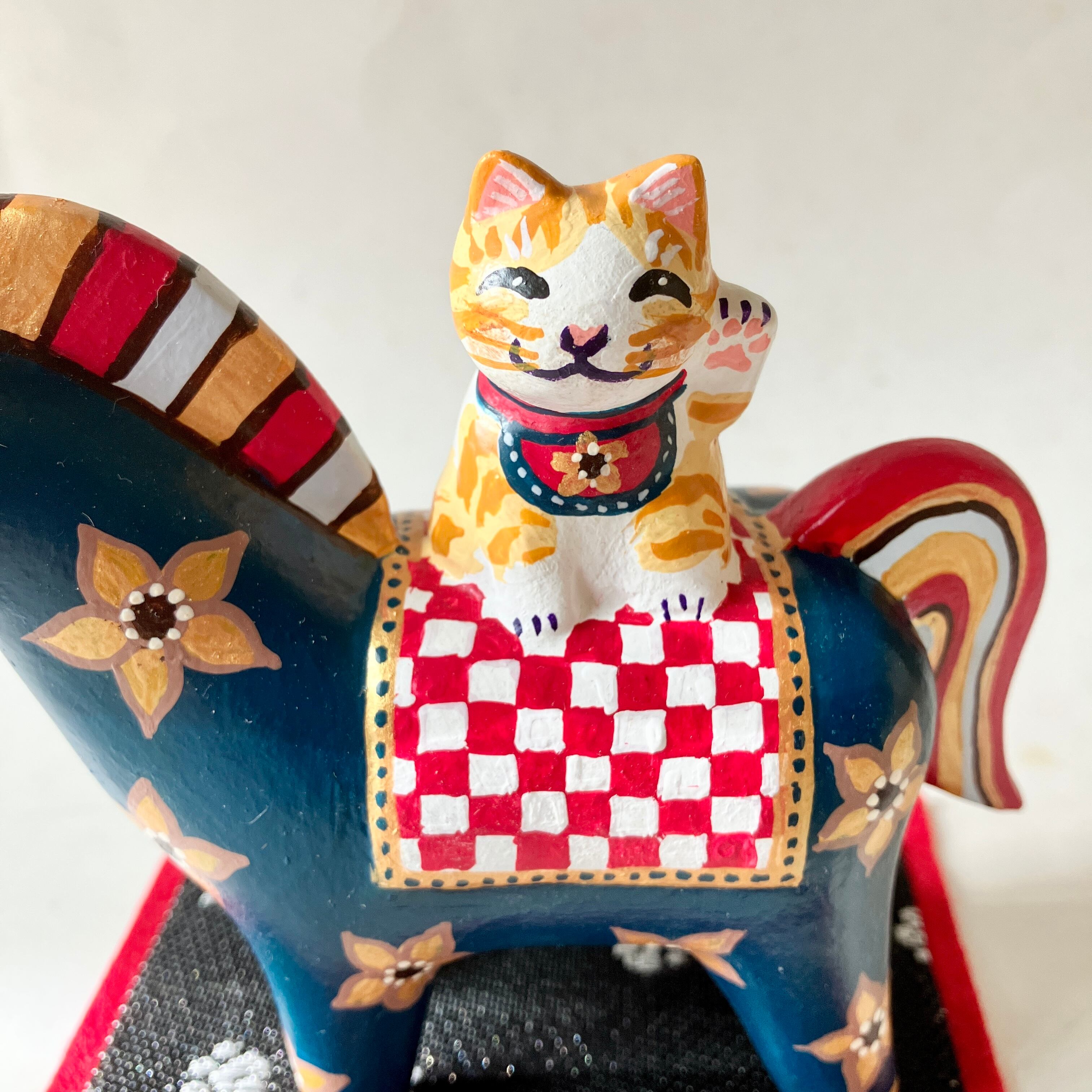 福馬(ふくば)に乗ったお猫様(紺藍午/白茶猫)